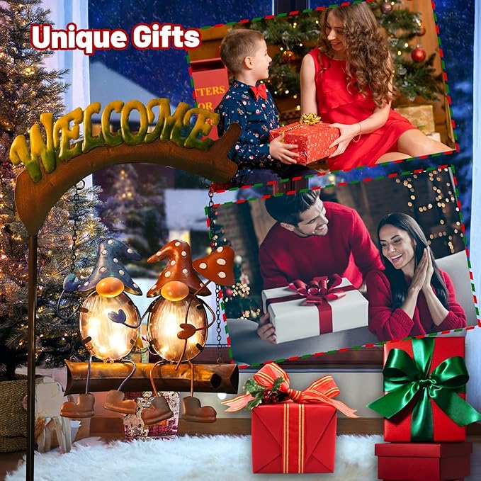 - 【Gnome Garden Statue】Gnomes outdoor statue lights can be used as both a welcome sign and a pathway light. The design of the swing can make the gnome partner swing with the wind to decorate your garden, which is a whimsical decor