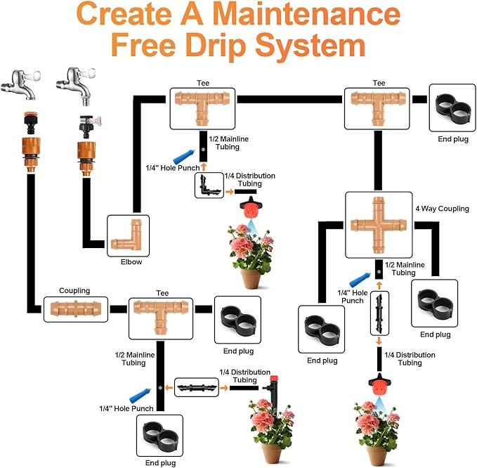 - 【High Impact Drip Irrigation Elbow Parts】Constructed of highly durable UV resistant materials, this 1/2 inch drip irrigation parts guarantee extended operation in harsh conditions. One-piece construction for added strength and durability for long-term performance.