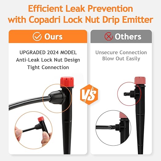 - Easy Installation & Leak Proof: The barbed ends can easily inserted into 1/4 inch irrigation tubing, they can be easily connected without softening the tubing end. And the upgraded twisting locked nut ensuring tight connection without leaks or high-pressure blowouts.