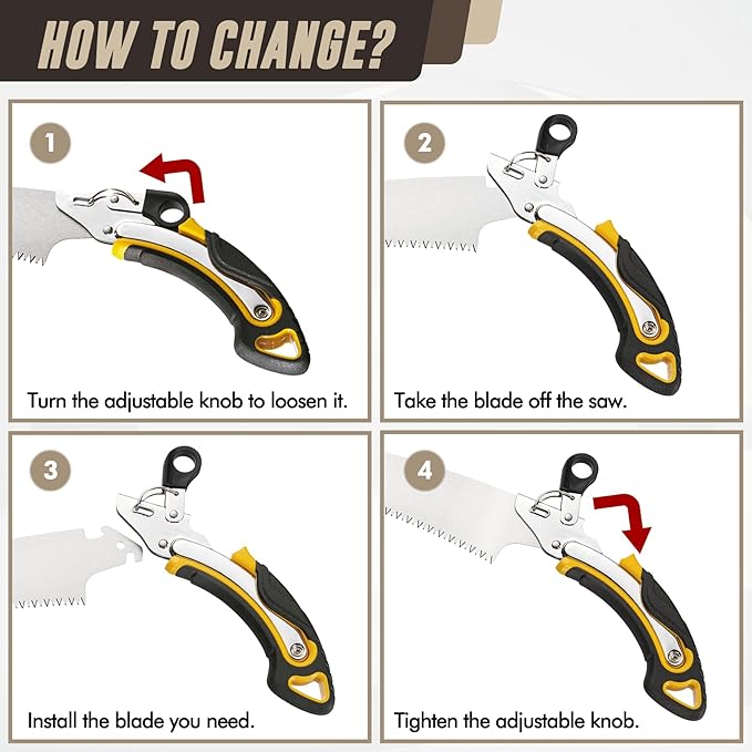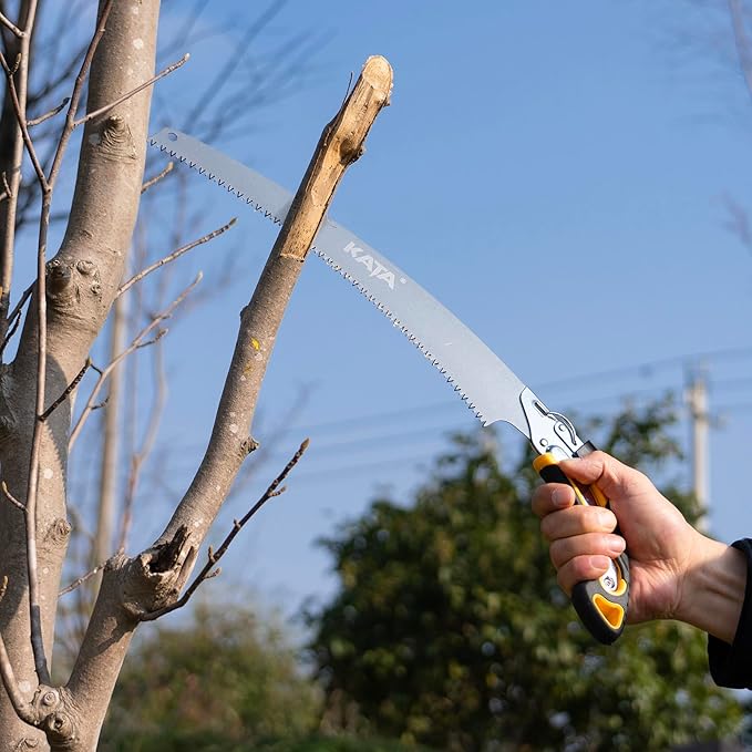 - Durable Material: Made of durable and rust resistant SK5 blades, pruning hand saw include both curved and straight blades, help you to cut through different angle of thick branches faster and better