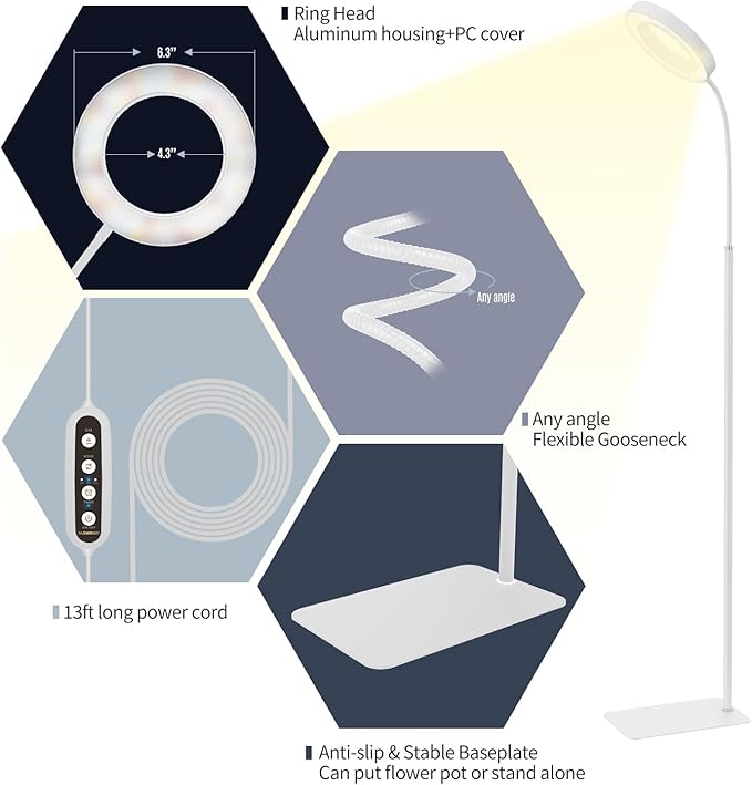 - 【Thoughtful Details】 The stable base will prevent the grow light from tipping over. The soft anti-slip pad underneath the base will protect the floor from damage. The power cord is upgraded to 13 ft long, suitable for more application scenarios .