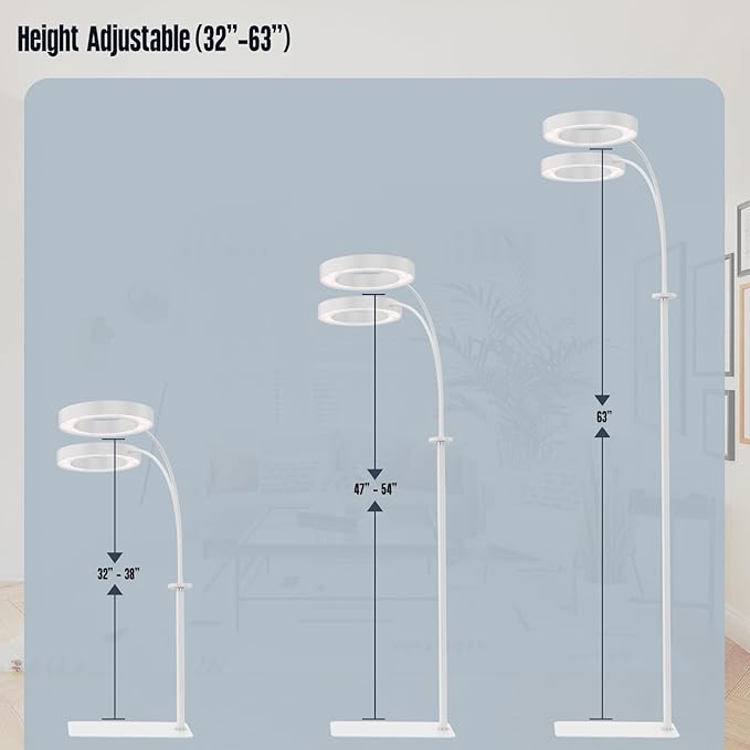 - 【Height Adjustable】Compared to traditional grow lights, our latest grow lamp features a detachable three-section design that is easy to install and can be adjusted to heights of 32/47/63 inches. The lamp head able to rotate 360 degrees. The flexibility ensures that your plants receive more even and effective light, allowing them to grow better.