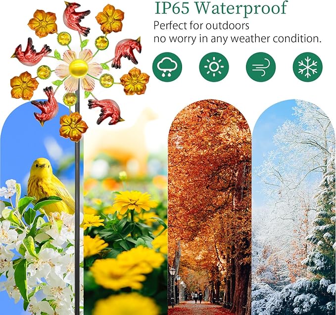 • 【Satisfied customer service】We sincerely hope that our solar wind spinner can illuminate your garden and bring visual enjoyment to your family. If you have any questions, please feel free to contact us.