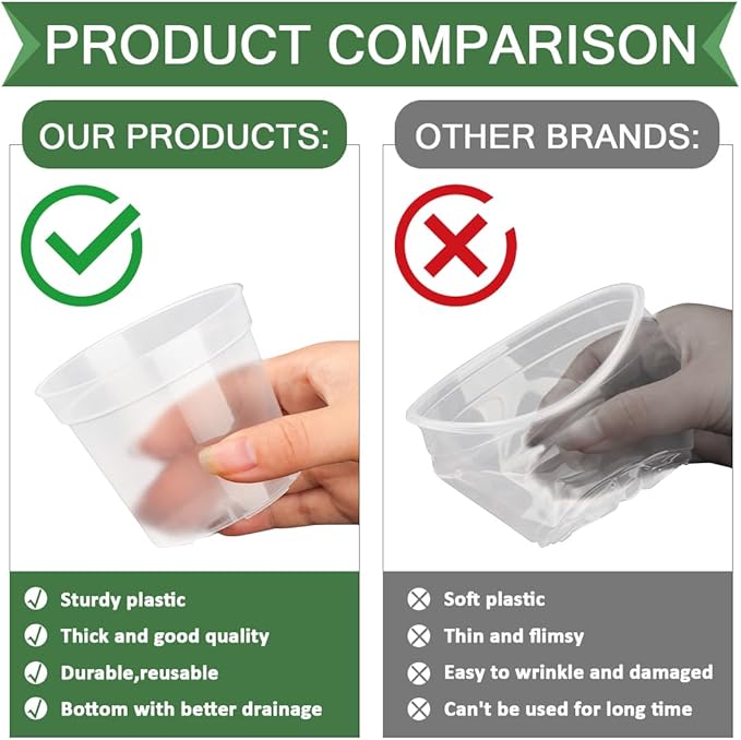 - 【Quality Plastic】Made of top grade plastic, no recycle material added, it can be repeat use for many times. The edge of the pots are sturdy enough for you to carry pots by one hand, two fingers.