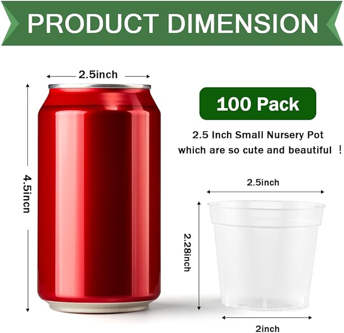 - 【What You Get】100PCS 2.5 inches diameter seeding pots, height is 2.36inch, bottom is 2 inch. Each piece is very small but enough for seeds starting or small plants like succulent to grow. Good Drainage holes for roots breathable better.