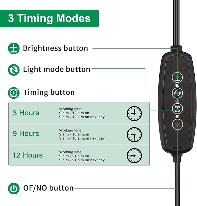 - AUTO ON/OFF TIMER: The auto cycle memory timer function has 3/6/9H modes for you to choose from, it's like keeping the sun on a schedule, even if you forget or are traveling, these grow light strips will take care of your plants every day, perfect for busy lifestyles.