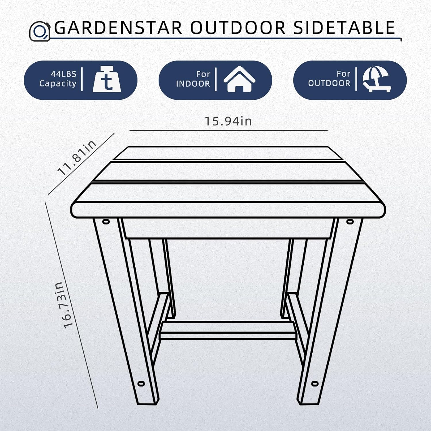 - 【Modern Design Material】GARDENSTAR outdoor side table, made from UV-resistant HDPE, combines the elegance of natural wood with exceptional durability. Unlike traditional wood, it remains sturdy in any climate. The smooth tabletop is easy to clean with soap and water, while sun suppressants ensure long-lasting color without fading or darkening.