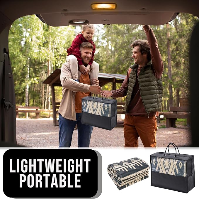 - LIGHTWEIGHT & PORTABLE: The lightweight foldable construction makes this patio rug ultra-portable; take them anywhere from campouts to picnics without adding extra bulk; with a matching carry bag for easy transport and storage