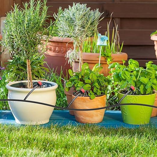 - Wide Application Irrigation Kit for Various Gardening Needs: this irrigation kit is ideal for a vast range of applications; May it be agricultural production, lawns, gardens, balconies, patios, vineyards, orchards, trees, or shrubs, it caters to all watering needs; Ensure the health and vigor of your landscaping and plants with our reliable drip irrigation parts and adjustable drip emitters