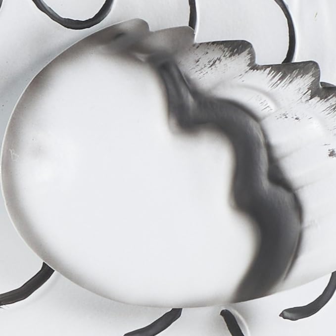 - WHITE AND BLACK MATTE FINISH A rooster garden sculpture that showcases orange, black texturing, and red accents, portraying a timeless aesthetic with its matte white finish