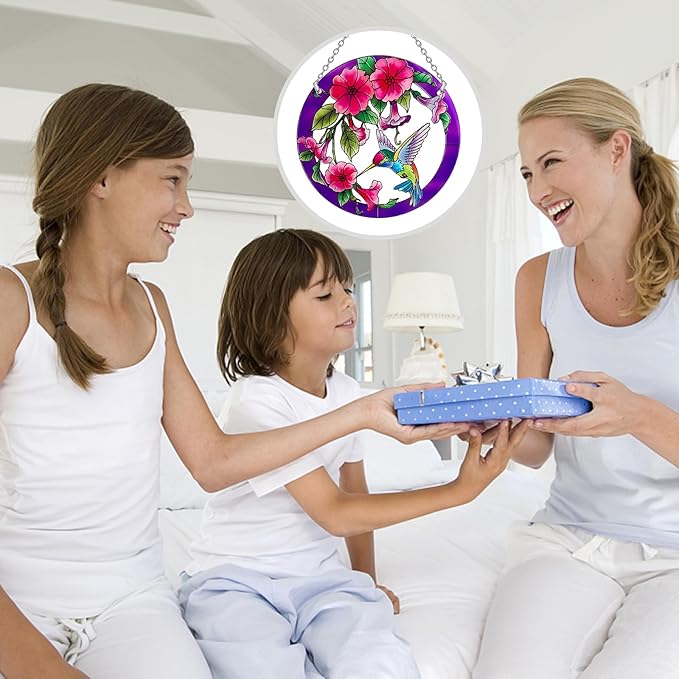 - Uniquely Suncatcher for Window - This gorgeous stained glass suncatchers feature a hummingbird and multicolored flower. Experience the magical dance of light and color as these stained glass birds beautifully adorn your windows and fill your surroundings with joy and wonder.