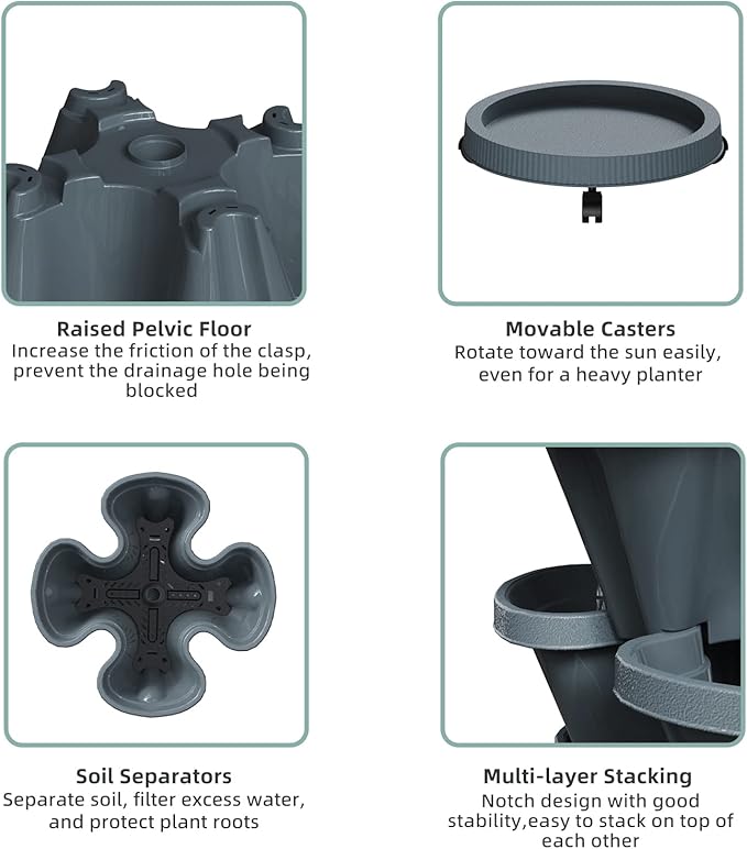 - Easy Assembly - Putting the dirt in is easy and there isn't any assembly required just stake them on top of each other. Happy planting in the kitchen, balcony, and garden.