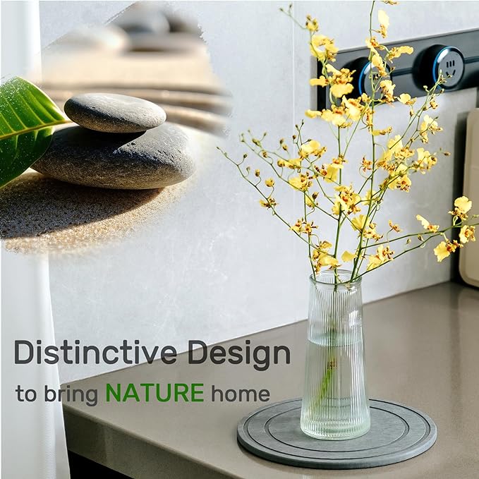 - 【Decorative design】The absorbent stone planter tray adds a natural & organic touch for indoor décor. Along with plants, the plant plate catch water indoor plant not only brings the nature in home and office, but also protects the surface of furniture & floor with Non-Slip Feet.