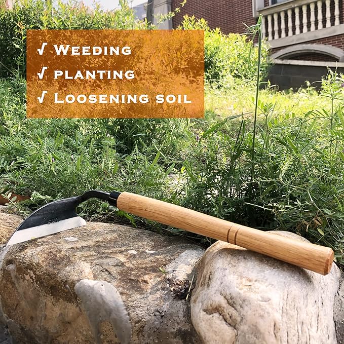 SHANFEEK Grass Sickle Japanese Weeding Hoe Garden Hand Tool Weeding Tools for Garden High-Strength Steel with Solid Wood Handle(Yellow)