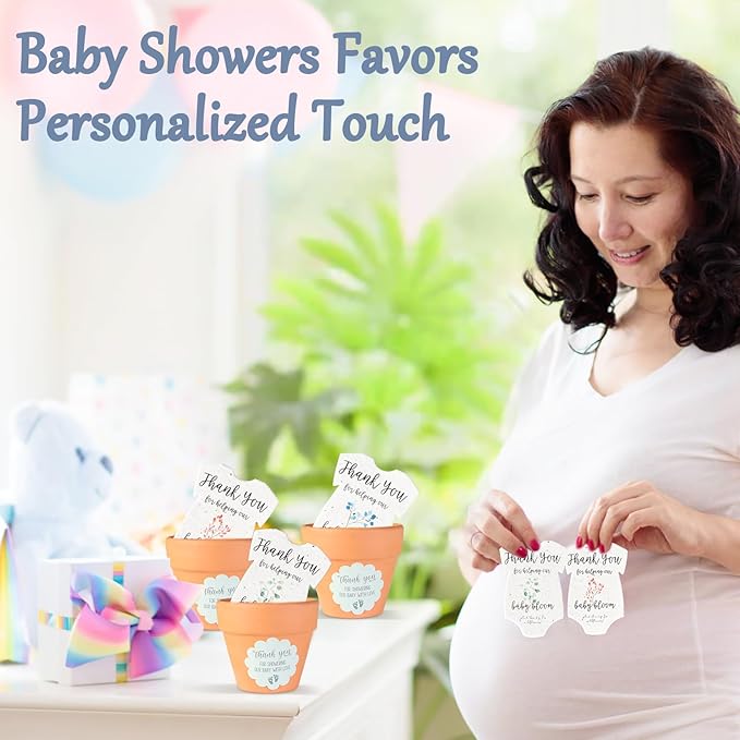 - Set of 6: Includes 6 blue onesie seed paper, 6-mini orange terracotta pots with stickers, perfect for weddings, baby showers, and life events.