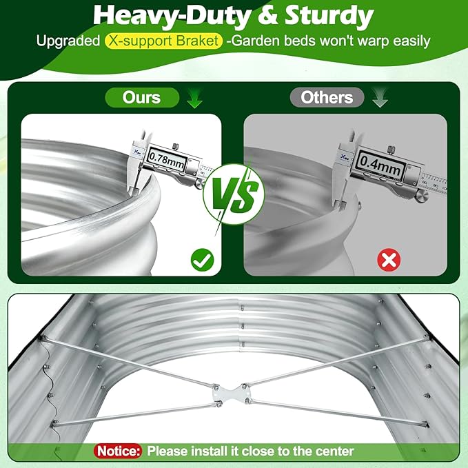 - Elaborately Designed For U: (1) X-shaped fixed rods provide added stability, preventing any deformation of the garden bed. (2) The open bottom facilitates drainage and promotes the exchange of organic matter, creating optimal growth conditions.
