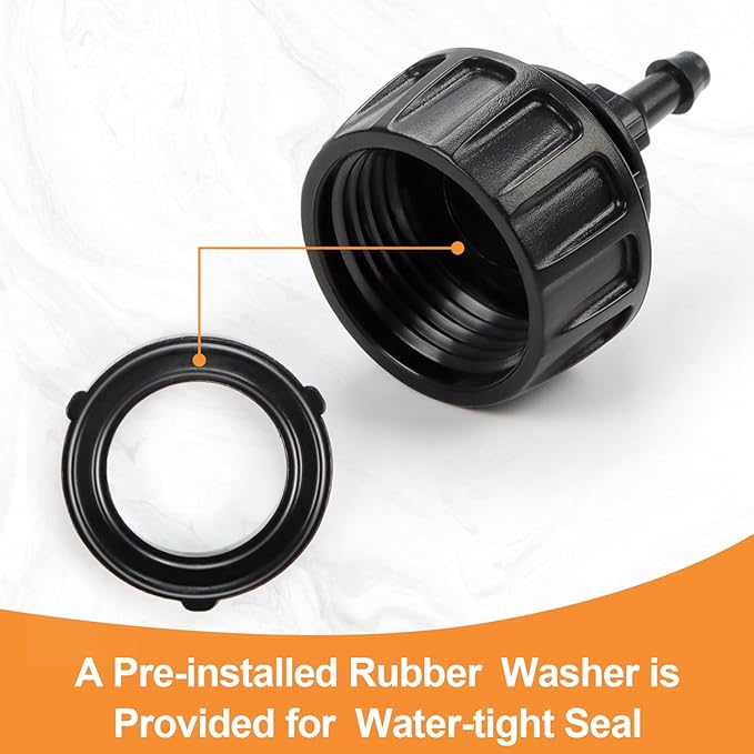 - Easy Installation & Leak Proof: Easily connect to 1/4" drip irrigation tubing to any standard 3/4" faucet, hose bibb or garden hose, the included rubber gasket is tightened thoroughly to 3/4" faucet to avoid leakage. Featured with twisting lock nut for super tight connection to eliminate leaks and high-pressure blowouts.