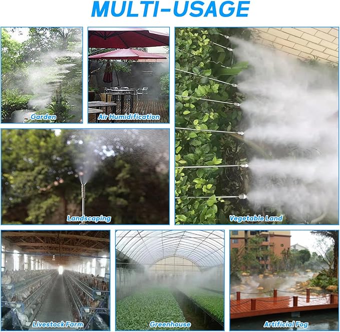 - 【 MULTI-USAGE 】The nozzle extension extends the mist spray another 4 or 6 inches in the mist line, giving a uniform water volume for plant watering in garden, vegetable land, landscaping, greenhouse, giving a continuous misting water for cleaning in livestock farm. Also available for Wetting and rust removal, Air humidification, Liquid spraying, Tobacco leaf humidification, Tablet coating, Flue gas evaporative cooling, Unit cooling, Fruit wax spray, Ceramic tile glazing, Factory humidification, Salt fog test, Artificial fog, and Humidification in other places.