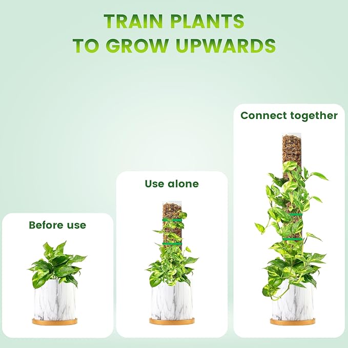- [Train Your Plants to Grow upwards] The sphagnum moss pole greatly helps climbing indoor potted plants with aerial roots overcome the difficulty of growing vertically towards sunlight and develop more, larger and greener leaves.