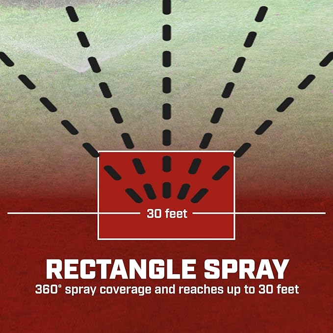 - IDEAL FOR SMALL AREAS: covers small gardens and lawns; up to 30-feet diameter, 360° soft spray, even coverage