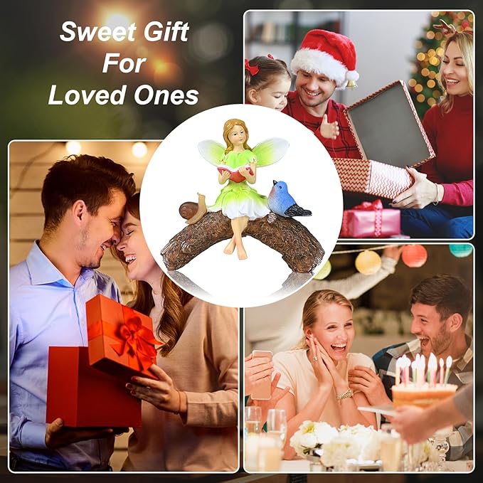 - 【WEATHER-RESISTANT DESIGN】This garden fairy statue is made from durable resin for long-lasting use.Hand-painted with vibrant colors and finished with a UV resistant coating. Able withstand all types of weather conditions including heavy rain and snow,resistant to fading, not easy to crack, waterproof ,keep your statue looking brilliant