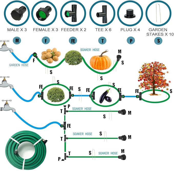 - 1. Round soaker hose with3/8" diameter, 100 FT long soaker hose for watering plants, garden, lawn, flowerbed.