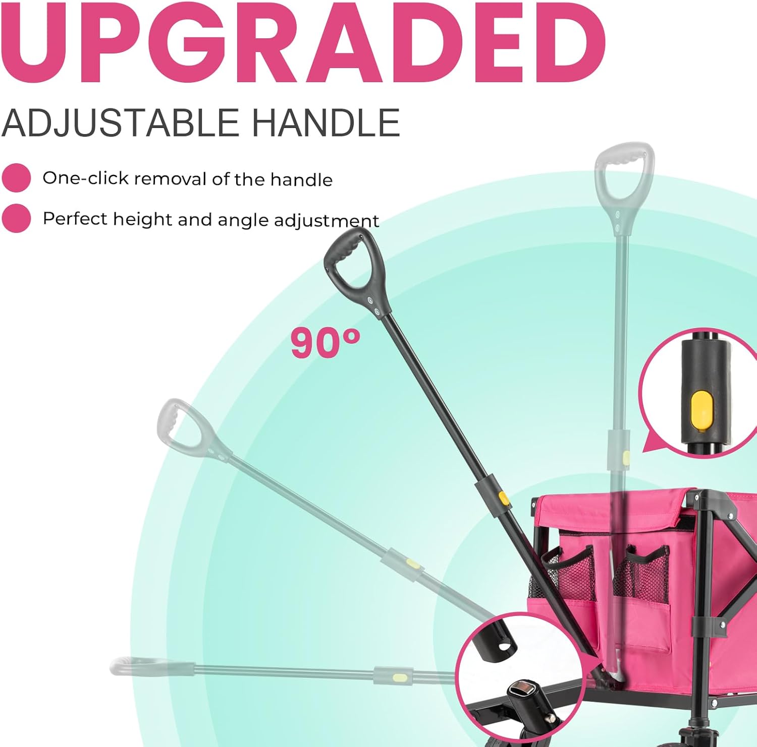 - 【Lightest and Smallest】Our portable foldable wagon is almost the lightest on the market, 𝐨𝐧𝐥𝐲 𝟏𝟒 𝐩𝐨𝐮𝐧𝐝𝐬, everyone can carry it with one hand, and easily transport it wherever you go. The lightweight foldable wagon cart with wheels folds into a compact MINISIZE, only 7 inches thick, 20% smaller than other wagons of the same capacity, and can be easily stored in your car trunk, motorhome, or closet.
