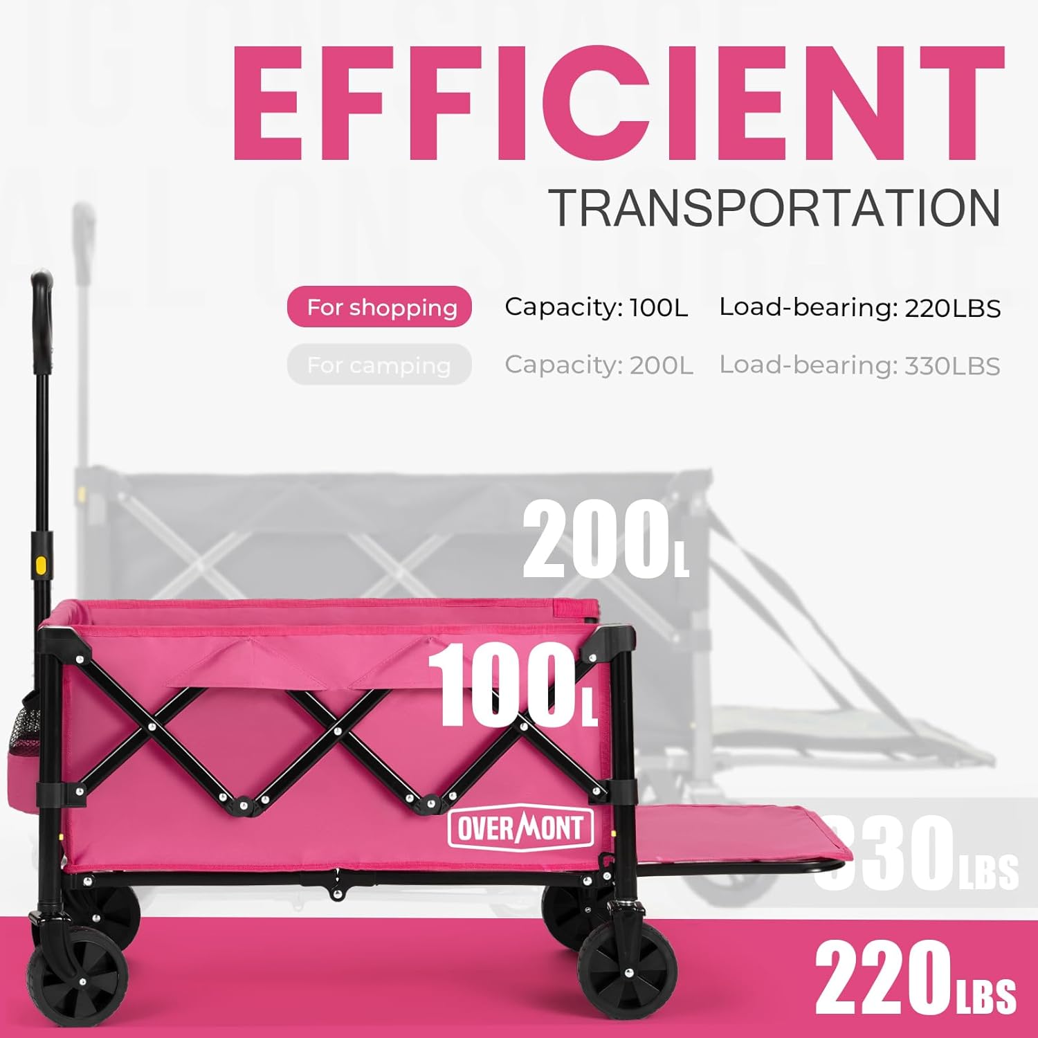 OVERMONT Collapsible Wagon with Tailgate - 220lbs Extended Lightweight Foldable Utility Wagons Folding Cart with Wheels - Small Garden Grocery Cart for Shopping,Grocery,Sports,Garden