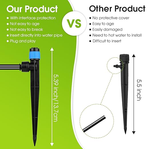 - 【Easy to Install and Clean】Our irrigation emitters can quickly connect with hose, just insert the hose into the drip irrigation spray emitters and it can be used. No heating required. The irrigation sprinkler heads adopt a self-flushing design and can clean themself during irrigation. You can also choose to remove the cover for a cleaner wash.