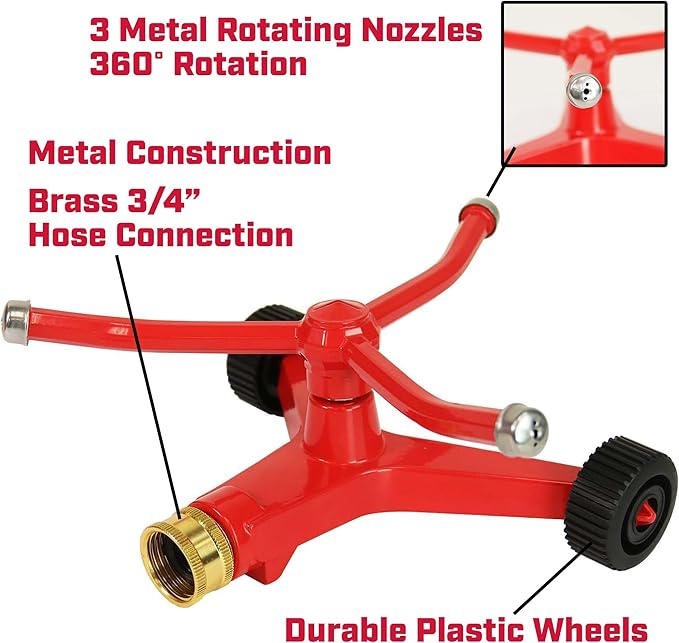 - 360-DEGREE COVERAGE: with a full 360-degree rotation, this sprinkler provides comprehensive coverage; rotating arms deliver water in all directions, eliminating the need for manual adjustment and ensuring thorough watering