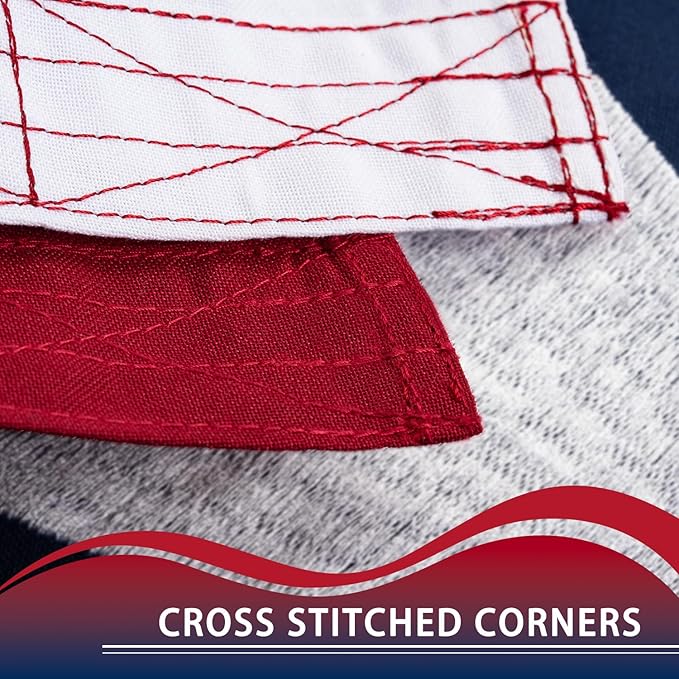 - 【PREMIUM EMBROIDERY】The star is richly embroidered with white yarn for the most vivid color possible. For a perfect appearance, every seam is hidden double stitched. This prevents tearing while helping to maintain the color of the stripes