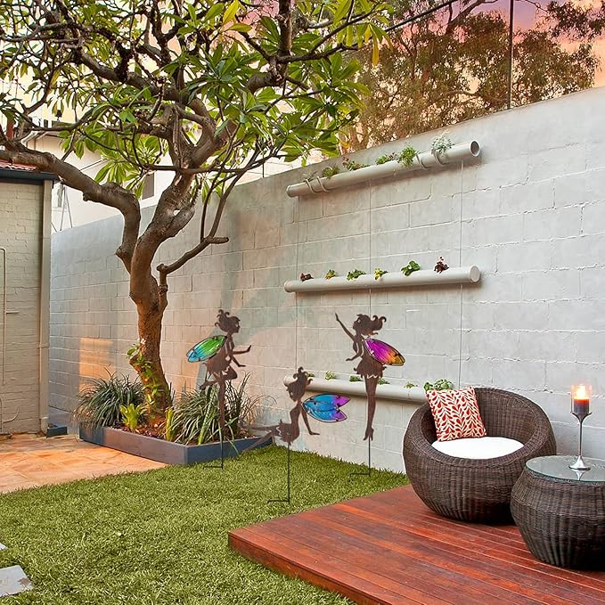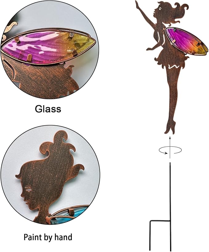 - Best design:Featuring 3pcs Charming metal fairy with beautiful wing Stakes decorative made from high grade rust-proof metal and colorful glass. Place them in your garden, yard or anywhere you want, they will bring more refreshing feel of nature. Best choice for garden yard lawn pathway decoration. Great gift for family and friends.