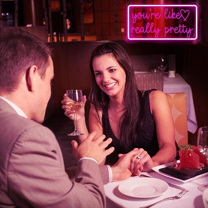 - ✨ 【Unique and charming design】- Pink you're like really pretty neon sign doesn't just brighten up your space, it's an iconic gorgeous piece. Whether you're hosting a lively party, enhancing the indoor or outdoor ambiance, or just want to enhance the ambiance of your home, business, or important event, our neon signs for wall decor will surprise you beyond expectations.