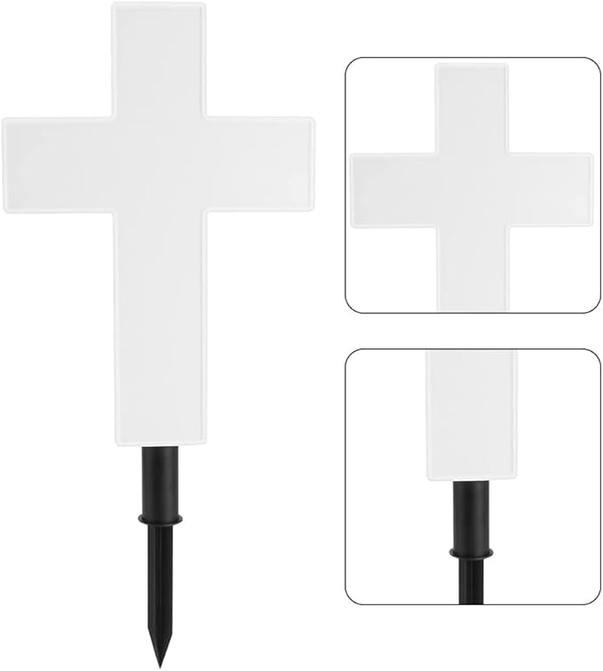 - [WIDE USE] - The solar cross is made of plastic, which can withstand any weather conditions and is durable. It can be used to the Cemetery Decorations, Roadside Memorials, and Floral Arrangements.Perfect as path lights and in-ground lights suitable for the garden,grave, flowerbed, landscape, walkway.