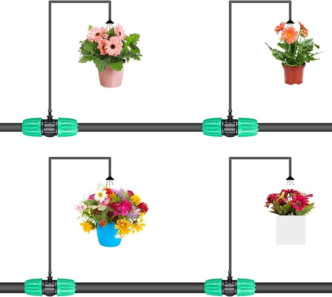 - Easy to Install: the drip irrigation part is simple and easy to install, no other tools are required, just press the connector into the tube and lock the pipe with the nut; Notes: it is easier to put the end of the tube into 75° to 80° hot water for about 30 seconds and then push