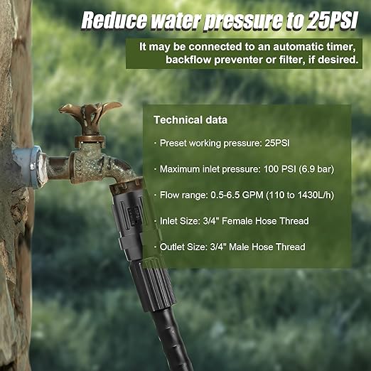 - Wide Compatibility: Our pressure regulator are suitable for various standard 3/4 "outdoor faucets, hose, garden hoses, water pipes, sprinkler manifolds, garden immersion hoses or household drip irrigation systems.