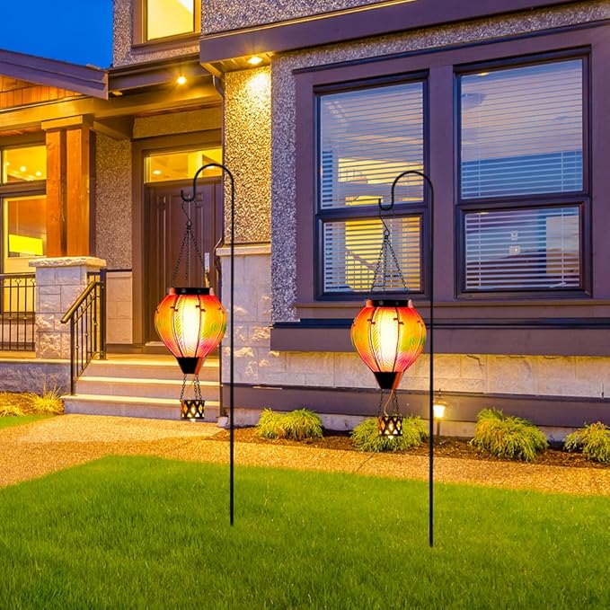 - 【Wide Application】Hot air balloon solar lantern equipped with "S" hook, easy to hang. 2PCS solar hot air balloon lanterns can be hung in the garden, yard, party, patio, lawn, porch, tree, pergola, balcony or windowsill. Whether it's day or night, solar hot air balloon lanterns with flame can add color and charm to your home.