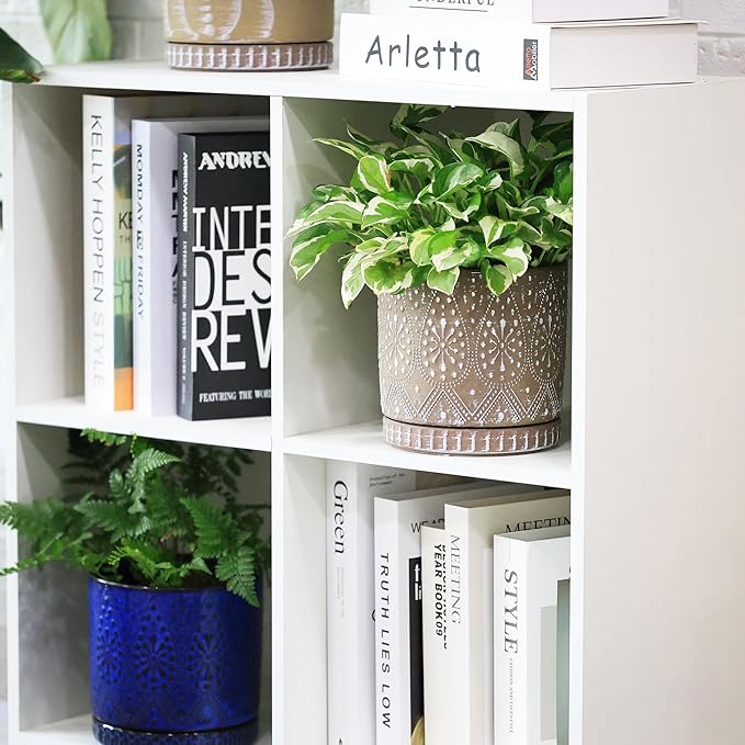 - Size & Package : 8 Inches + 6 Inched plant pot. Package: contains 2 ceramic flower pots, 2 ceramic saucers and 2 mesh pads(NOT INCLUDE PLANTS)