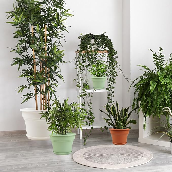 - 【Multiple Sizes to Meet Various Planting Needs】Pot for plants indoor outdoor are available in size 9-11-13-16 inch. Plastic flower pots are perfect for planting a wide range of small to medium-sized plants commonly found in homes and offices. Whether it’s orchids, succulents, herbs, snake plants, mints, cacti, aloes, peace lilies, or more, these garden pots with drainage and saucer are designed to accommodate them all.