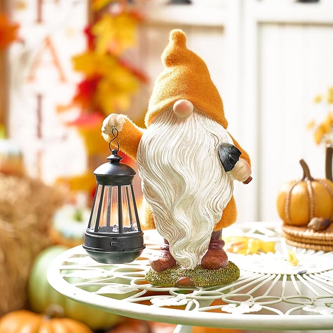 - 【Original Design】 This adorable gnome holds a lantern that emits a white light and diligently patrols the garden, guarding it through the night.