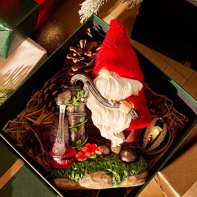 - 【Original Design】This adorable gnome is depicted getting water from a pressurized well, with flowing water and warm lighting effects for added visual appeal.