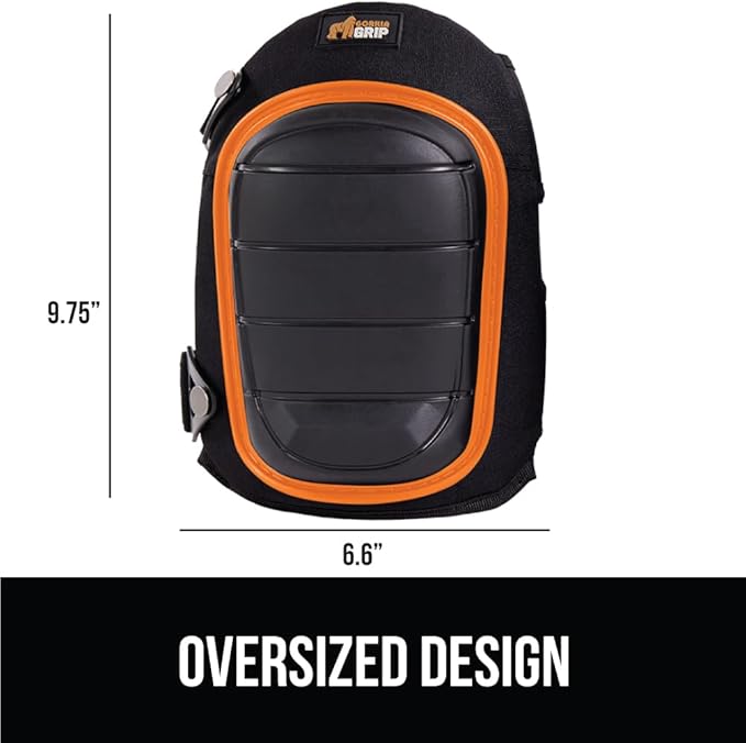 - OVERSIZED DESIGN FOR TOUGH JOBS: pads are designed with an extra large surface area that provides ample coverage and protection; each pad measures 9.75 x 6.6 x 3.1 inches; straps measure 14 x 3.25 inches; right and left pads are clearly marked for easy use; knee pad can withstand up to 1100 pounds