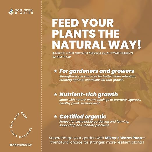 Soil Seed & Water Mikey's Worm Poop Worm Casting Organic Compost Fertilizer - OMRI Listed - Vermicompost with Earthy Smell for Indoor Plants - Safe and odorless