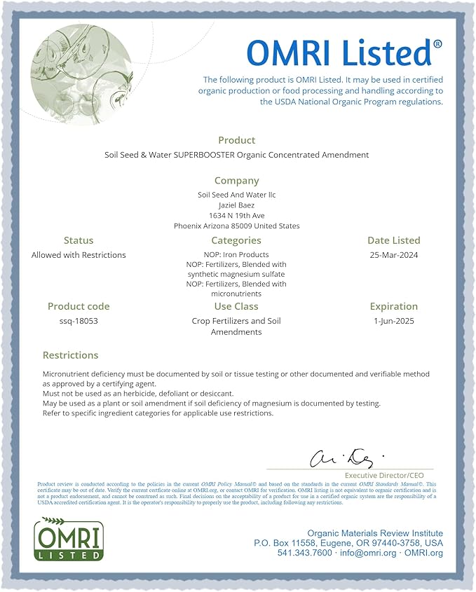 Soil Seed & Water SuperBooster Concentrated Organic Soil Amendment Fertilizer - Macronutrients, Micronutrients, Structural Component and Minerals - OMRI Listed