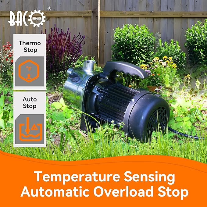 BACOENG 1.6 HP Water Transfer Pump Sprinkler Garden Pump, 1000GPH Lawn Pressure Booster Pump, Lake Pump for Irrigation and Water Draining, w/Check Valve & 3/4" Garden Hose Adapters