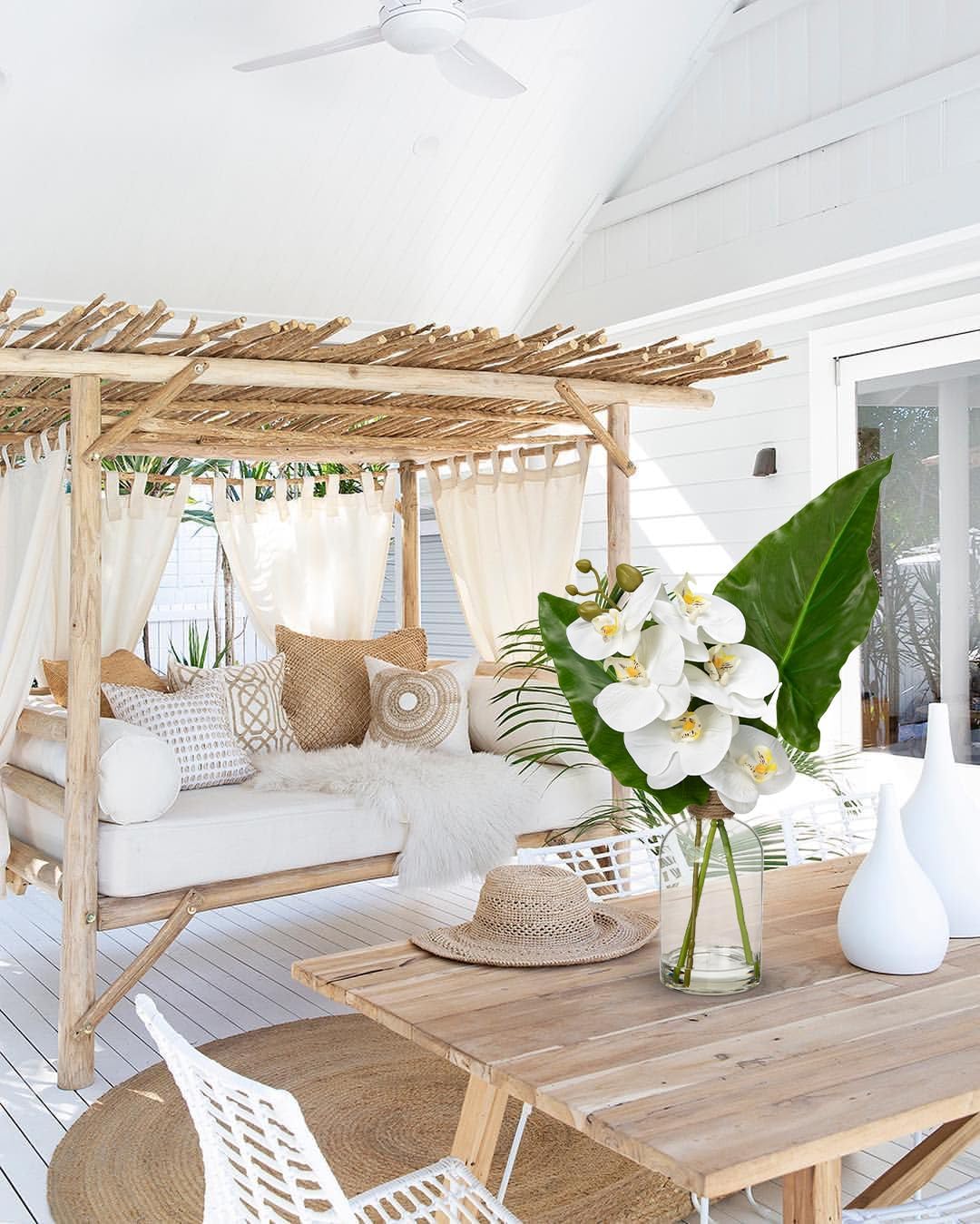 - [Premium Faux Plant] - Featuring 2 big green leaves and 2 orchid flowers in a dense arrangement, this design is completed in a glass vase with fake water. The addition of a hemp rope adds a chic tropical style to this fake potted plant.