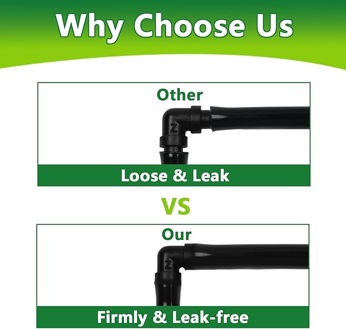 - Easy Assembly:Simply insert the irrigation elbow at the ends of the 1/4 inch irrigation tubing without the need for glue or tools, making garden work more convenient. Pro tip: Heating the hose end can facilitate easier assembly onto the elbow.