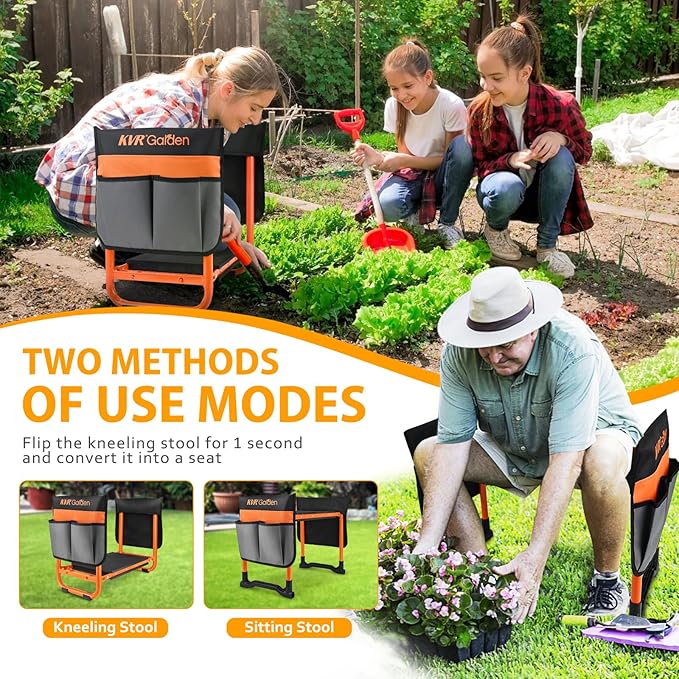 KVR Garden Kneeler Seat Heavy Duty, 2024 Upgraded Garden Bench Widened 10.2", Anti-Rust & Anti-Wear, Foldable Gardening Stool Prevents Back Pain Knees, Gift for Women Men, Seniors, Mom, Dad