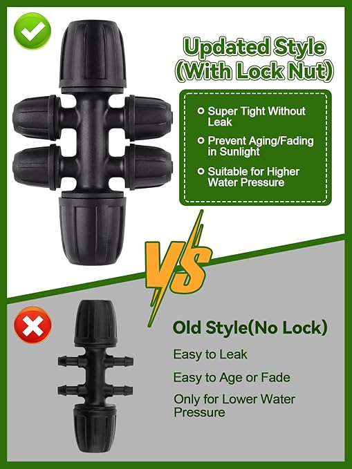 - Anti-drop Lock Design: These barbed tee connectors are designed with locks to keep the fitting locking tightly. Secure and easy installation. You just need to press the barb tee into tubing and lock the tube with screw caps.