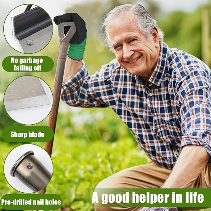 - 【Quick and Efficient Cleaning】Our sharpened gardening scraper shovel heads fit seamlessly to the floor, allowing for efficient weed removal and debris clearing in just minutes. eliminating the need to bend or kneel, ensuring thorough cleaning without leaving any residues. Suit for gardeners seeking high-efficiency tools.